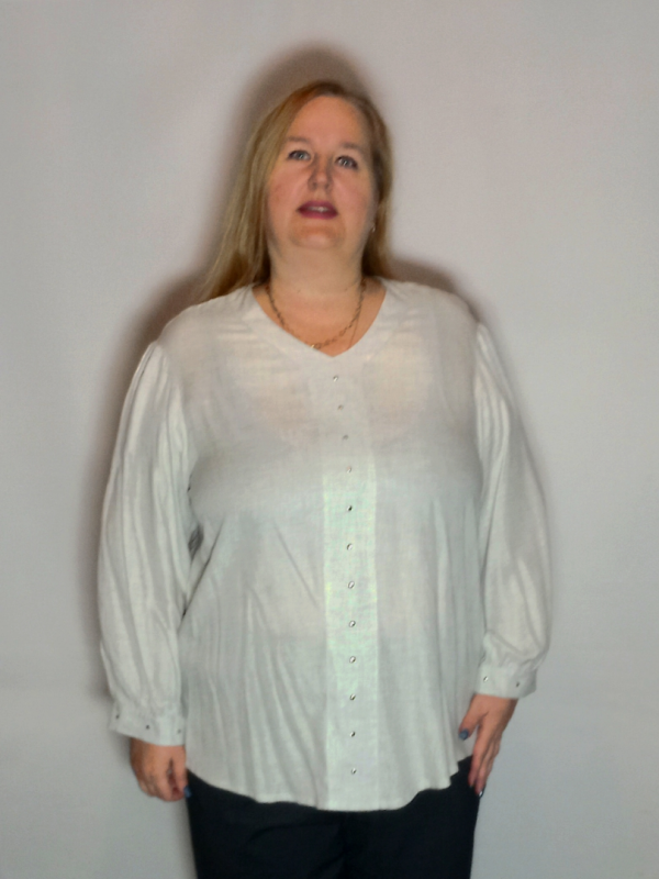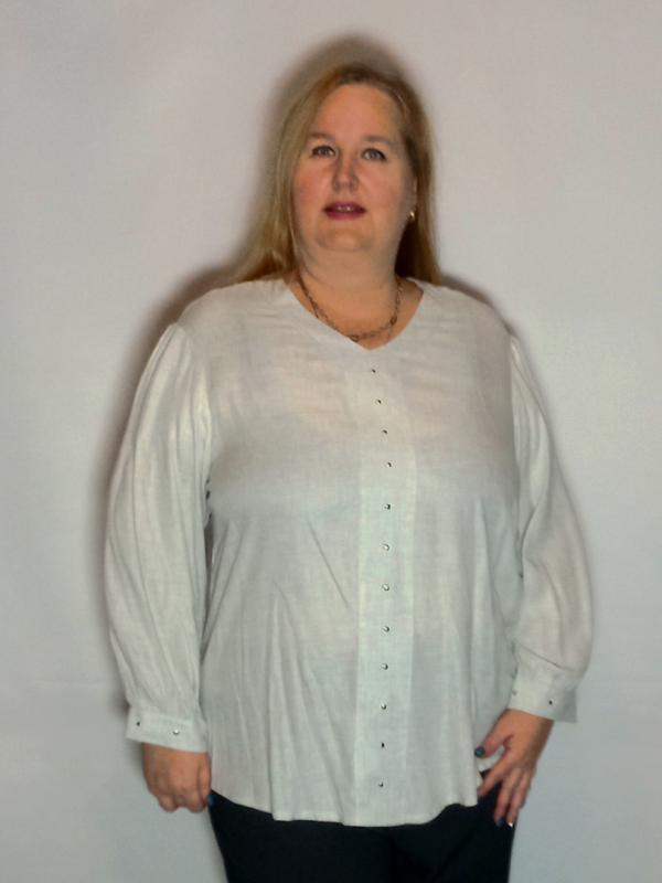 Блуза выполнена из комфортной вискозной ткани. Вырез горловины V- образный. Полочка и манжеты, выполнены с декоративными элементами. Рукав рубашечный. Блуза прямого силуэта.