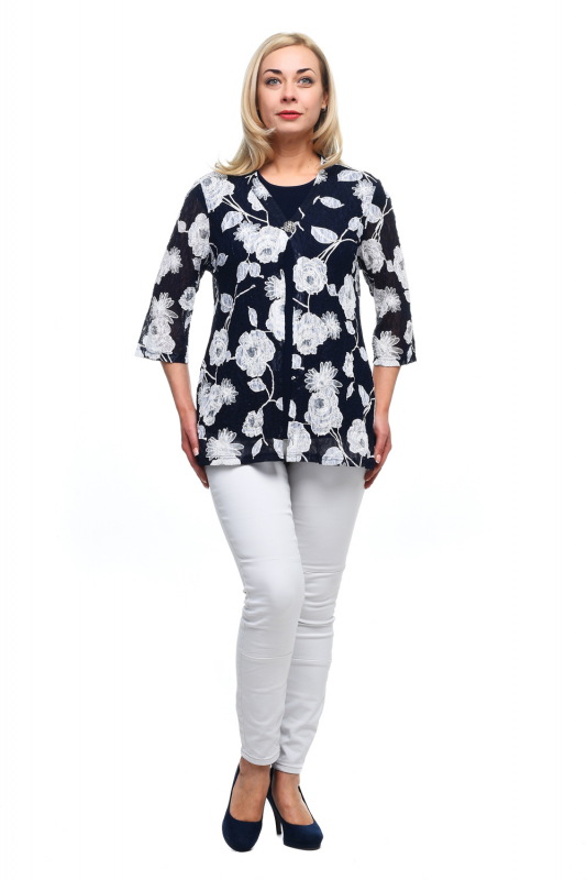 Эффектный стильный кардиган из кружевного полотна с крупным цветочным принтом в комплекте с топом