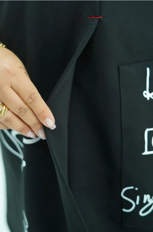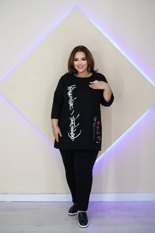 Стильная туника выполнена из плотного трикотажа. Трикотаж  приятный, не рыхлый, умеренно эластичный. Чем то напоминает  плотную вискозу, но  тоньше, чем академик. Внутренняя сторона трикотажа по виду гладкая, на ощупь мягкая, слегка бархатистая.