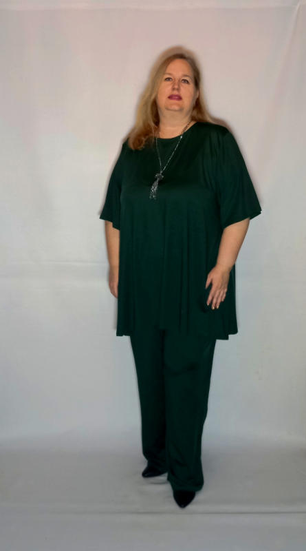 Простой по крою, но элегантный и красивый костюм выполнен из трикотаж вискоза-холодок. Трикотаж плотный ( не тонкий, как Китайский), очень эластичный, шелковистый, не мнется, хорошо дышит и пропускает влагу.