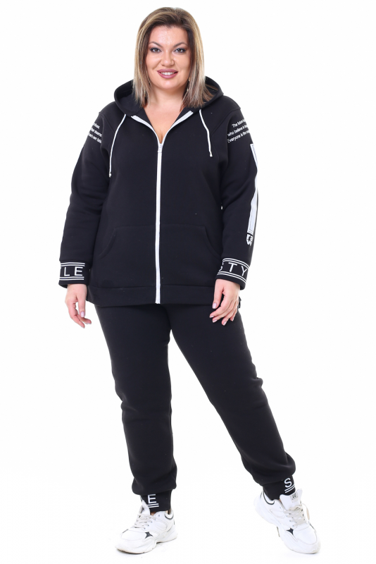 Симпатичный костюм для дома, отдыха и спорта выполнен из однотонного  трикотажного полотна. Трикотаж эластичный, к телу приятный, средней плотности на флисовой основе. Костюм состоит из толстовки и брюк.