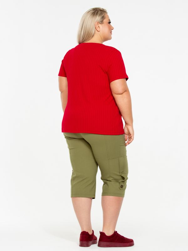 Вырез горловины V-образный,  который эффектно подчеркивает шею и визуально удлиняет её.