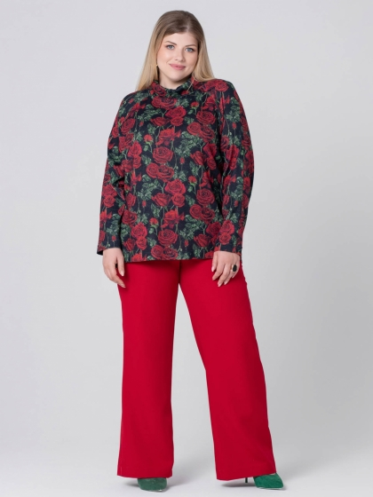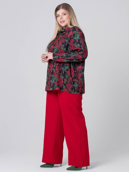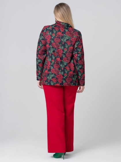 Эффектный джемпер прямого силуэта выполнен из мягкого трикотажного полотна с цветочным рисунком, выполненным в технике Digital. Красные цветы какое-то время назад предлагались женщинам в основном в виде принтов на летних вещах. Теперь пора отойти от традиций и порадовать милых дам новыми декоративными решениями. Горловина изделия оформлена мягким воротником стойкой. Рукав длинный, покроя реглан. Этот джемпер - идеальный выбор для тех, кто ценит комфорт и хочет выглядеть оригинально.