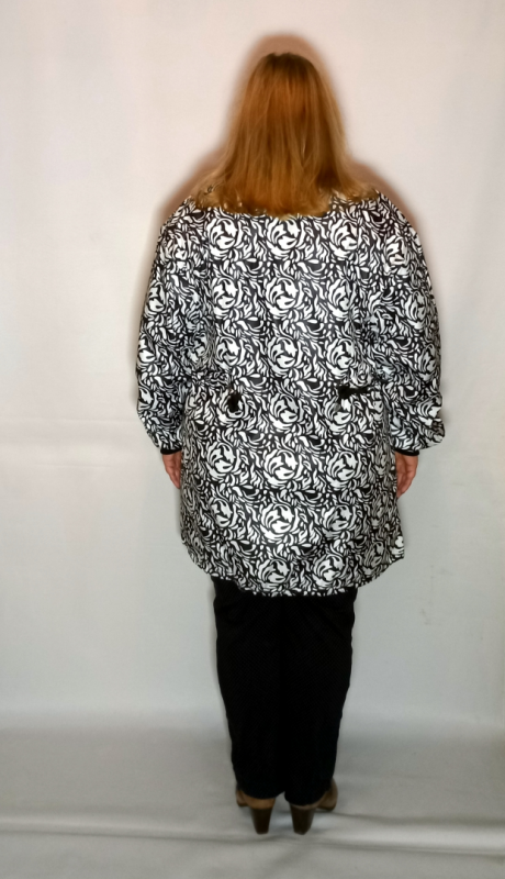А так же на талии сзади  в боковые швы вшита кулиска. Ей Вы можете регулировать ширину  плащика по талии