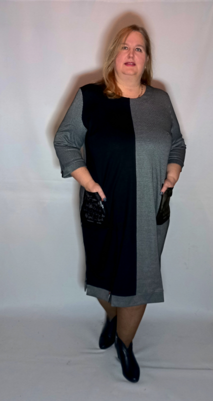 Платье выполнено из плотного трикотажа двух видов : однотонный и с рисунком. Трикотаж приятный, умеренно эластичный