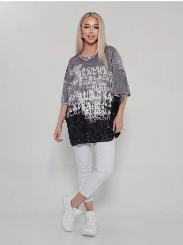 Шикарная туника- футболка выполнена из мягкого, очень эластичного мраморного велюра с рисунком.