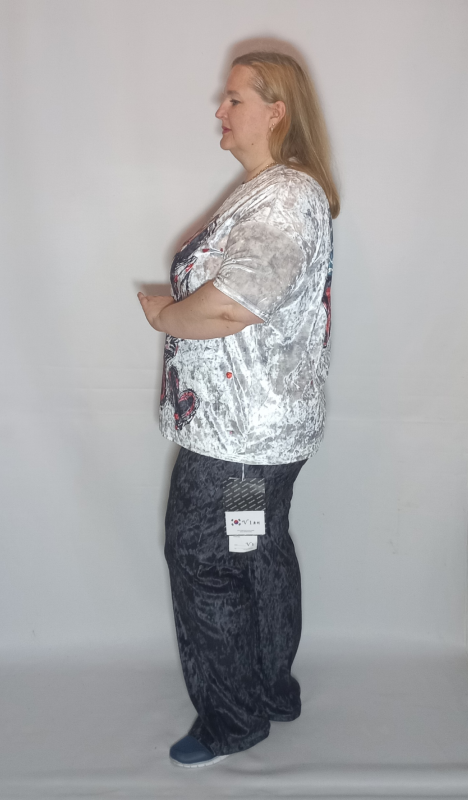 Шикарная туника- футболка выполнена из мягкого, очень эластичного мраморного велюра с рисунком.