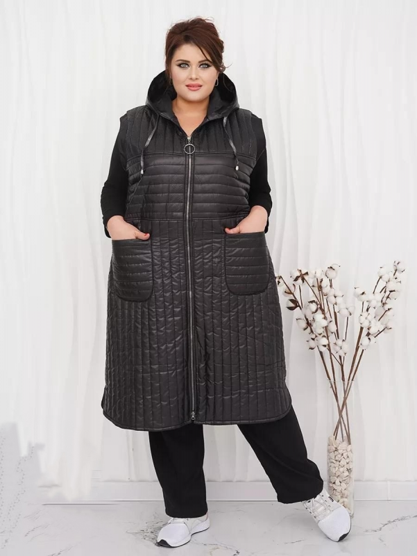 Стильный, удлиненный жилет выполнен из курточной стежки, на подкладе. Стежка красивая, шуршит мало.