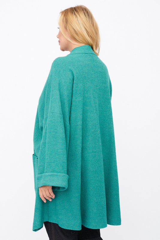 Рукав втачной с приспущенной линией плеча, по нижней части застрочен отворот.